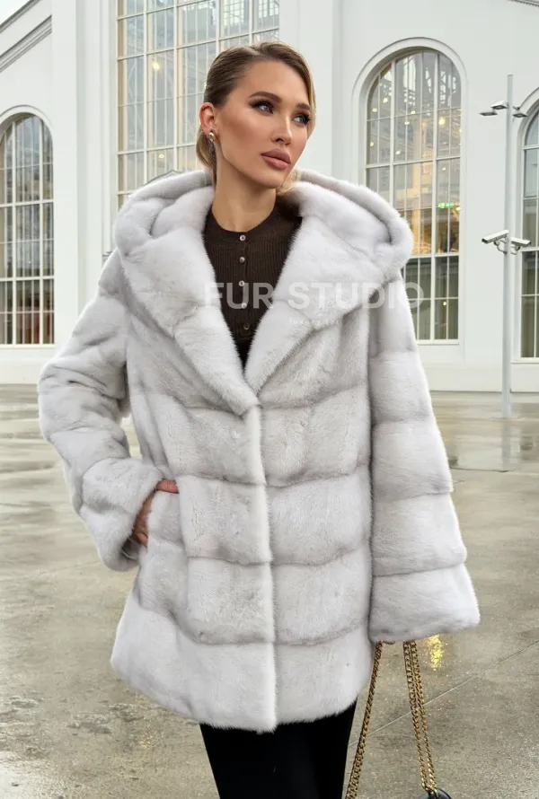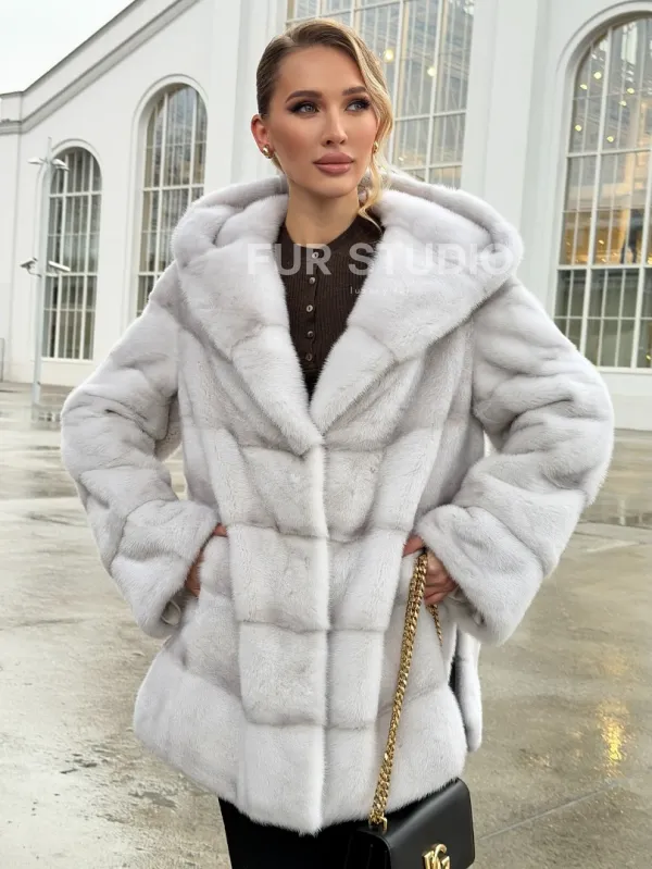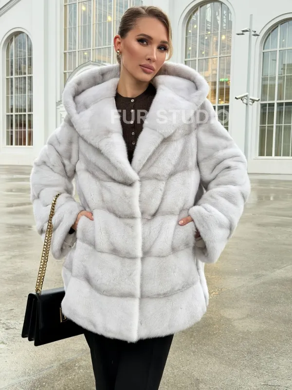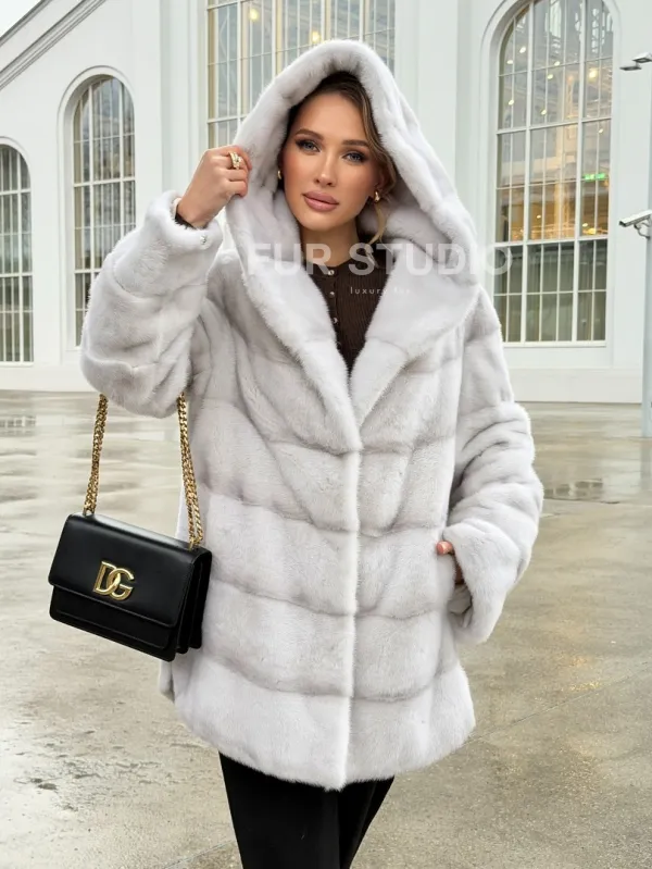 Белая норковая шуба с капюшоном - автоледи 102675