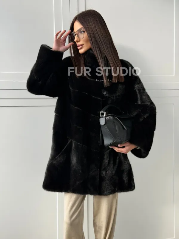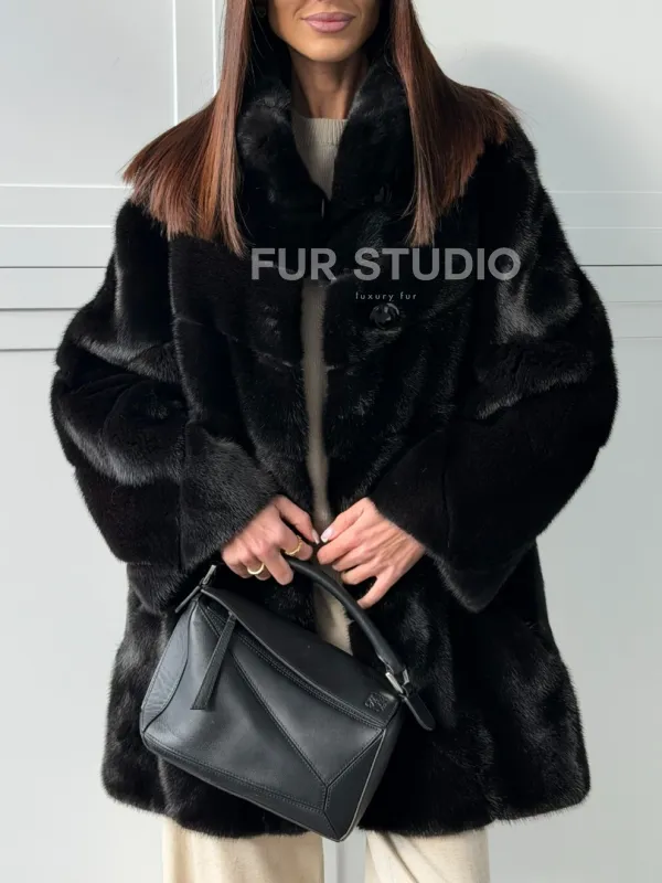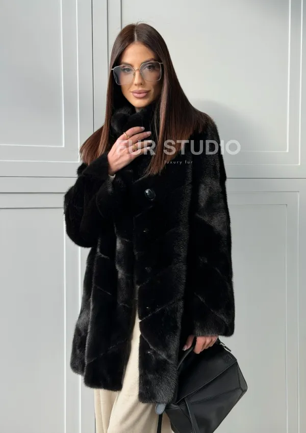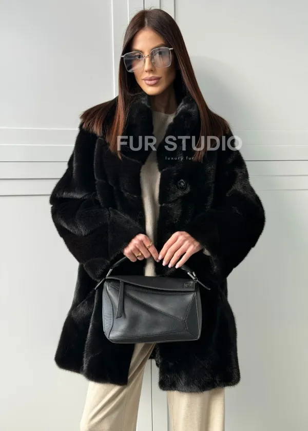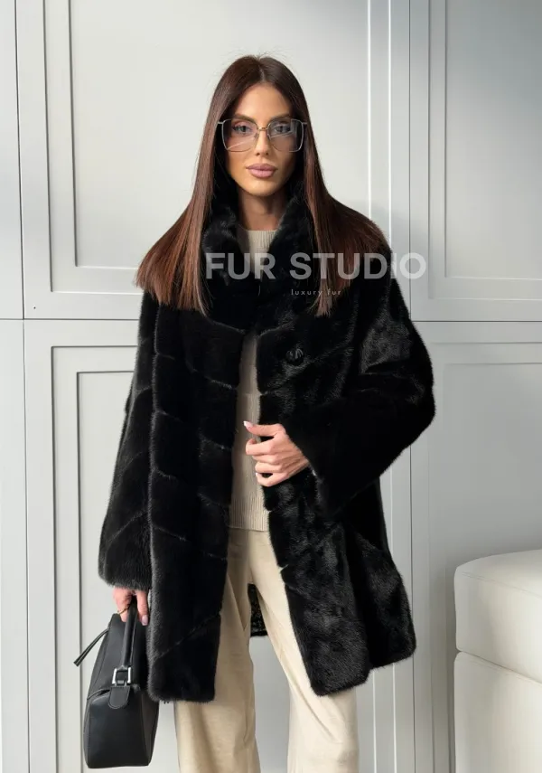 Черная норковая шуба - стойка воротник 102848