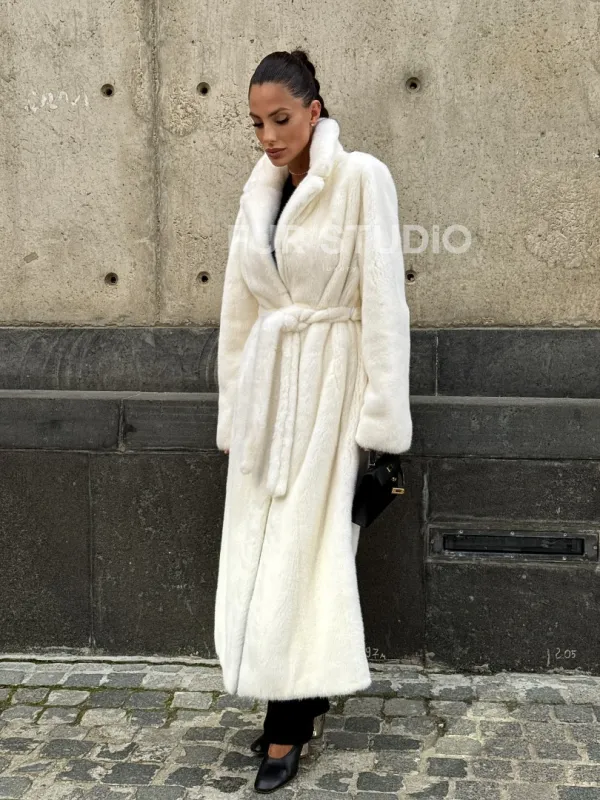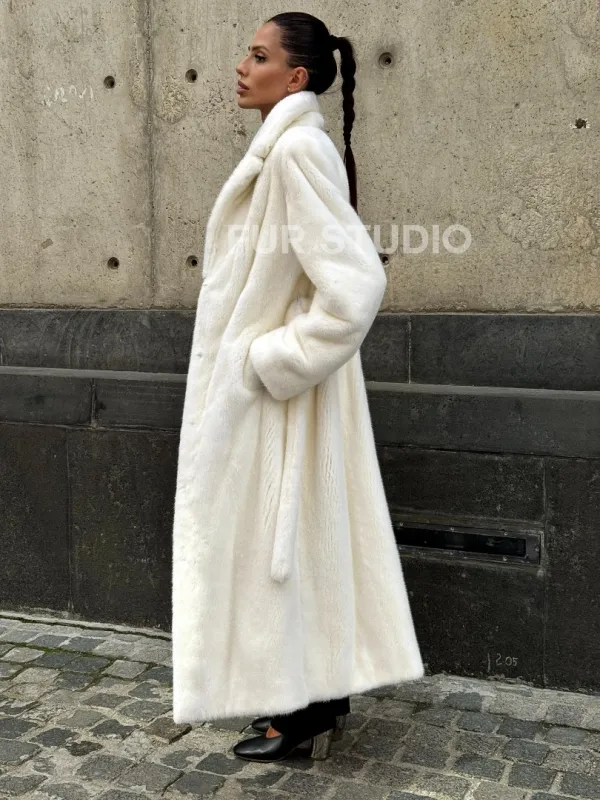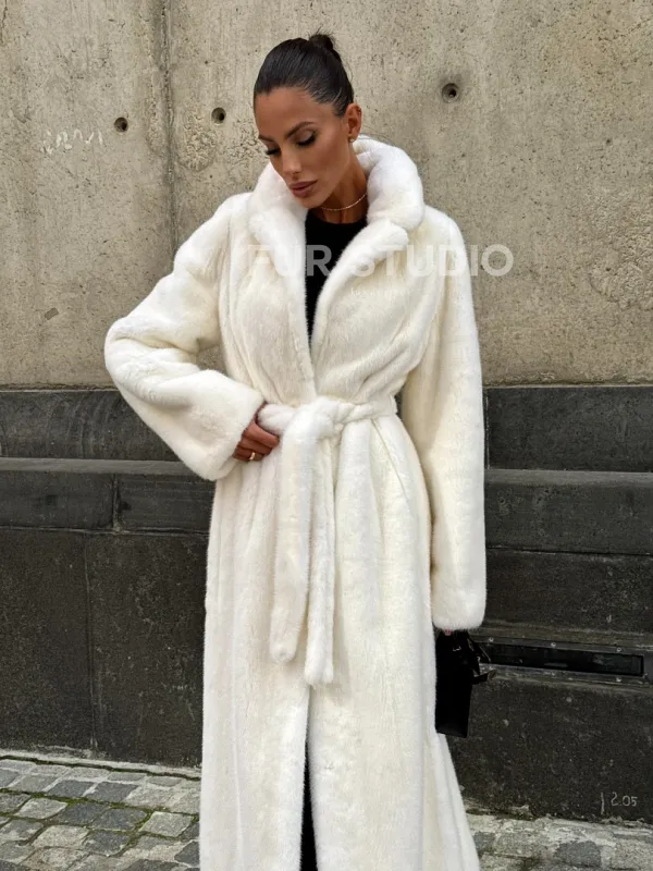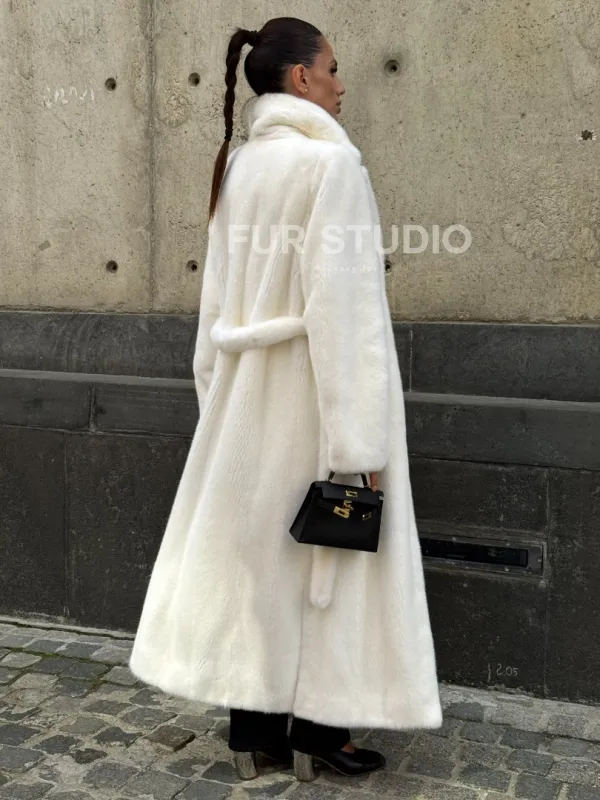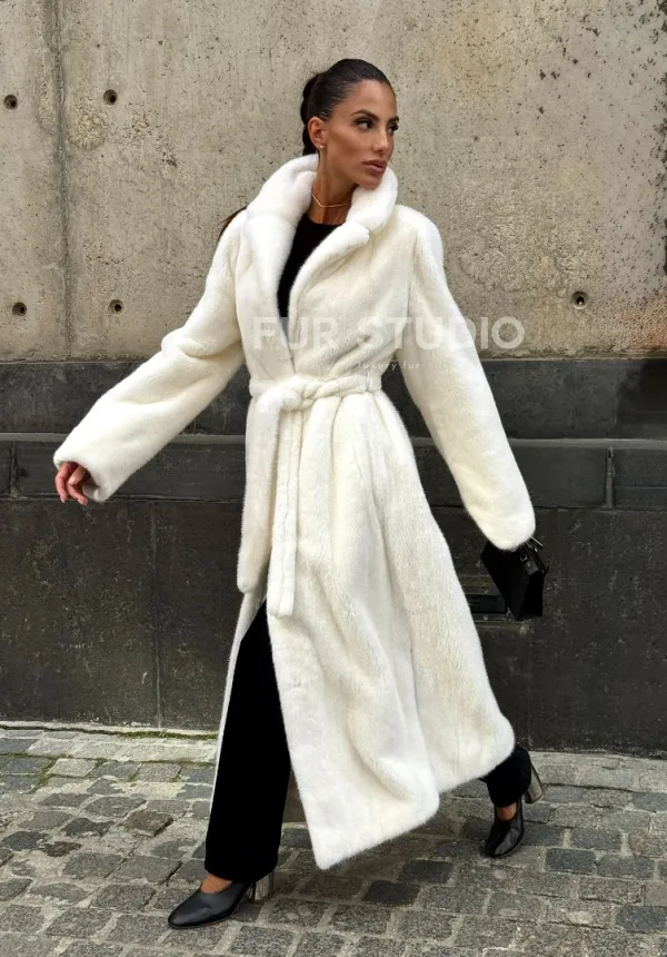 Длинная белая норковая шуба 102111