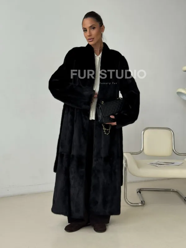 Длинная черная норковая шуба доступна для покупки в нашем шоуруме Furs Studio в . У нас так же есть доставка во все города России. Добавьте немного роскоши в свой гардероб с этой шубой, которая будет служить вам многие годы.