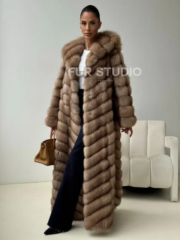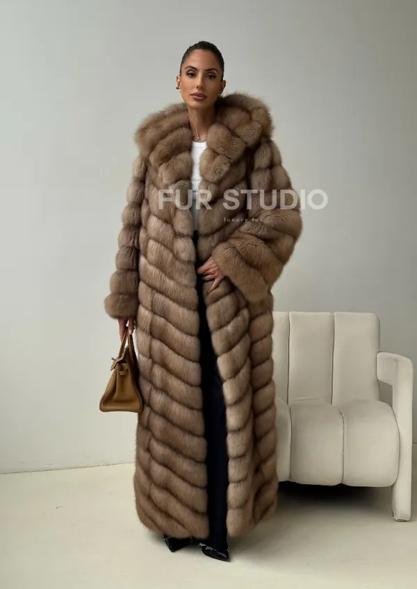 Длинная шуба из меха куницы с капюшоном доступна для покупки в нашем шоуруме Furs Studio в . У нас так же есть доставка во все города России. Добавьте немного роскоши в свой гардероб с этой шубой, которая будет служить вам многие годы.