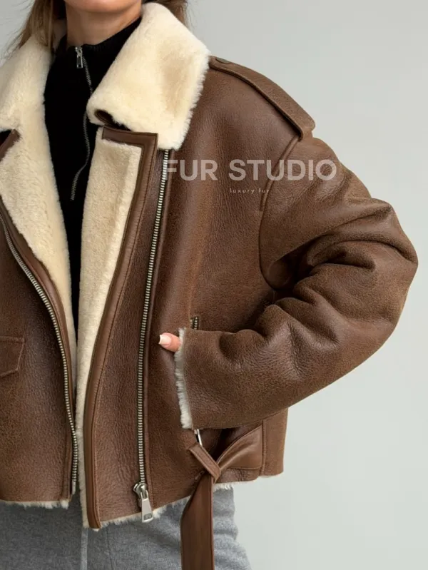 Короткая косуха-дубленка из овчины доступна для покупки в нашем шоуруме Furs Studio в , а также предлагается удобная доставка во все города России. Обогатите свой гардероб этой дубленкой, которая прослужит вам многие годы, добавив немного роскоши в ваш повседневный образ.