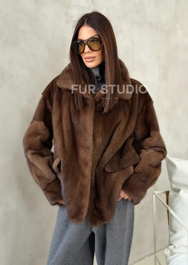 Мех данной шубы аукционная норка, цвет коричневый. Предлагается в размерах от 42 до 50. Длина модели 65-70 см, что выгодно подчеркивает фигуру девушек. Эта модель идеально подойдет для девушек и женщин, предпочитающих роскошные натуральные меха.