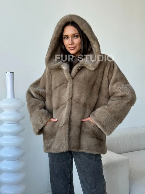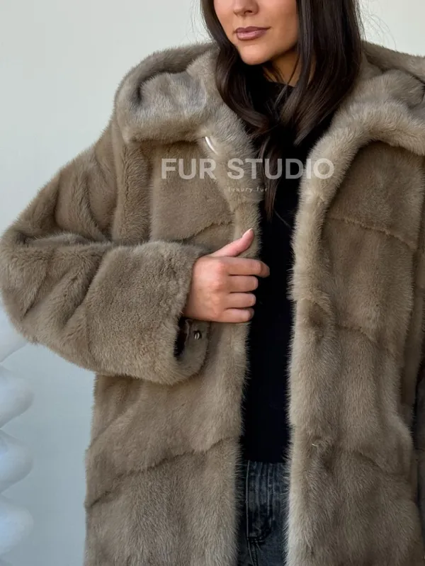 Короткая норковая шуба с капюшоном 102498