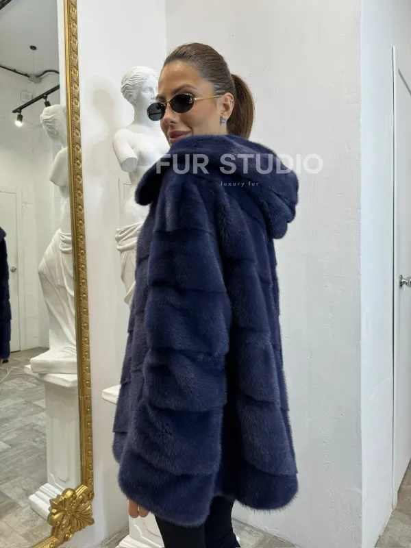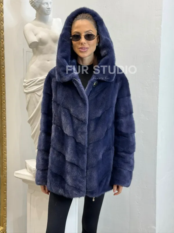 Короткая шуба из импортной норки с капюшоном 100124