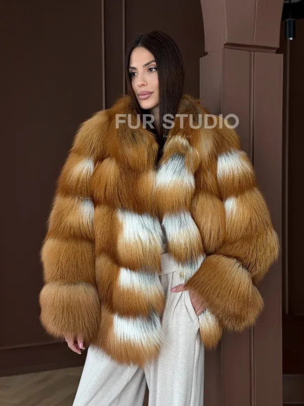 Короткая шуба из рыжей лисы 102903