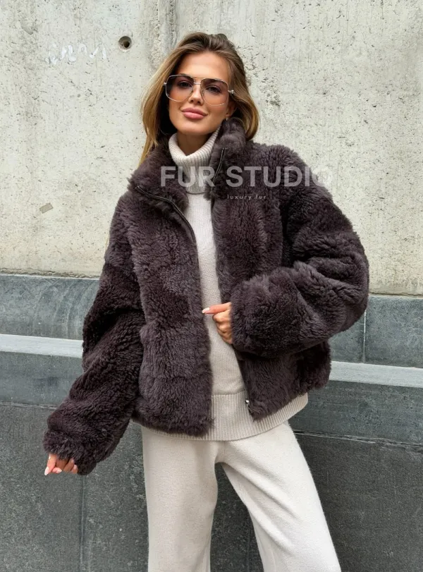 Натуральная двухсторонняя дубленка - бомбер 102543