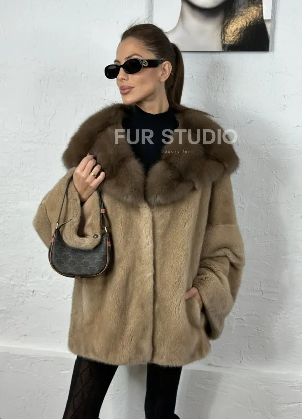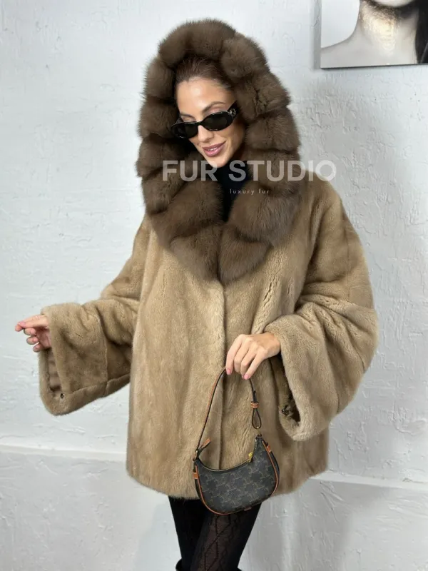 Норка автоледи с капюшоном куница - цвет пастель 100715