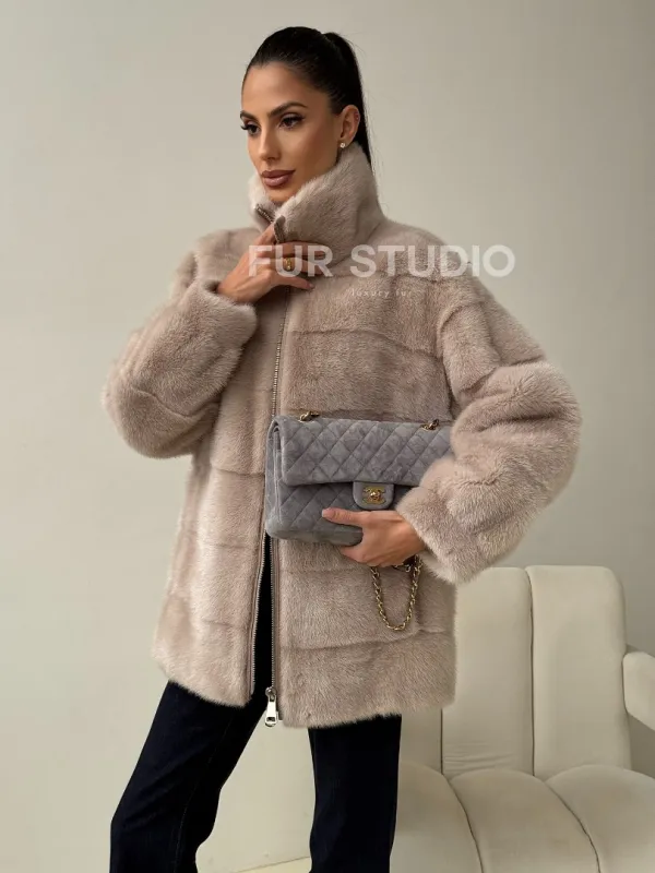 Норковая куртка стойка воротник 102455
