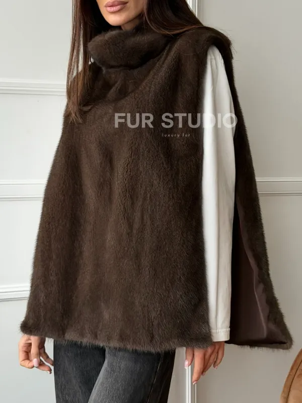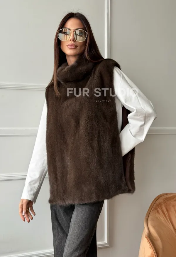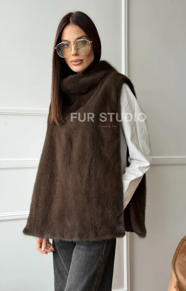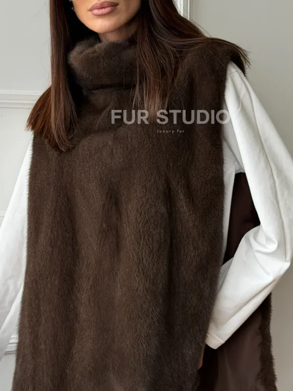Норковая манишка коричневого цвета 102742
