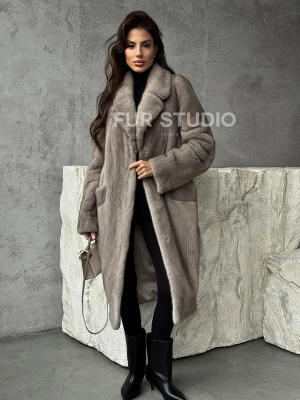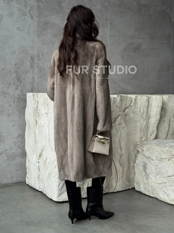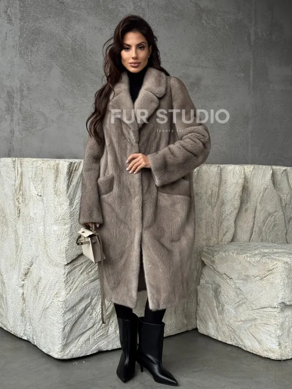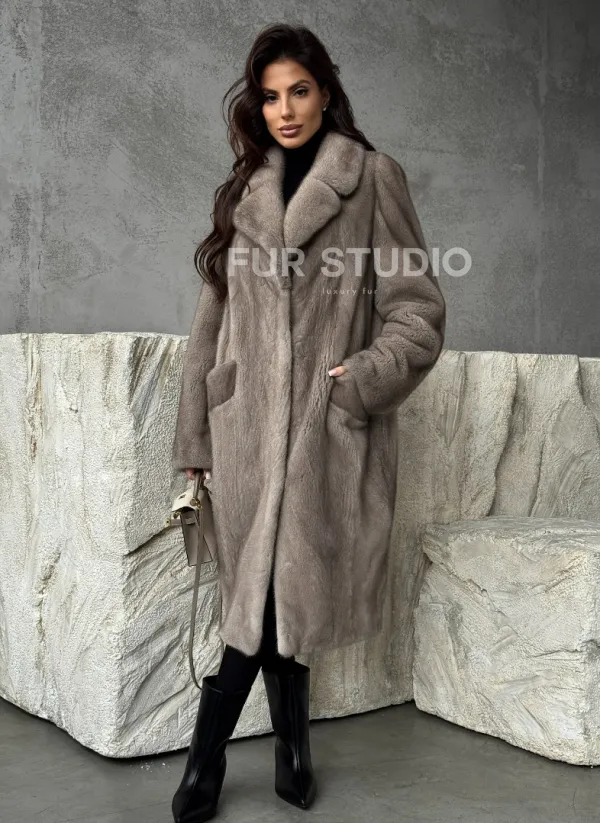 Норковая шуба в сером цвете "Тренд - 2026" доступна для покупки в нашем шоуруме Furs Studio в . У нас так же есть доставка во все города России. Добавьте немного роскоши в свой гардероб с этой шубой, которая будет служить вам многие годы.