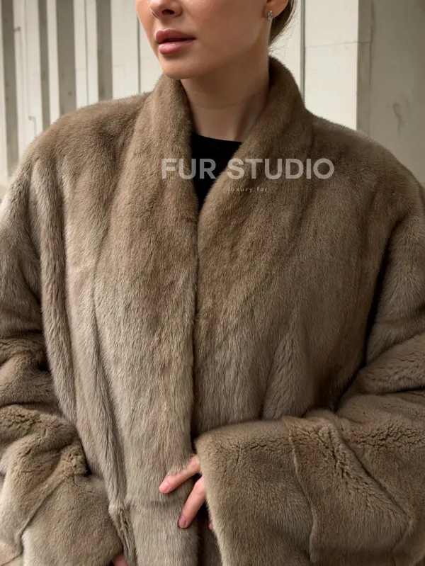 Мех данной шубы аукционная норка , цвет бежевый. Предлагается в размерах от 46 до 48. Длина модели 70-75 см, что выгодно подчеркивает фигуру девушек. Эта модель идеально подойдет для девушек и женщин, предпочитающих роскошные натуральные меха.