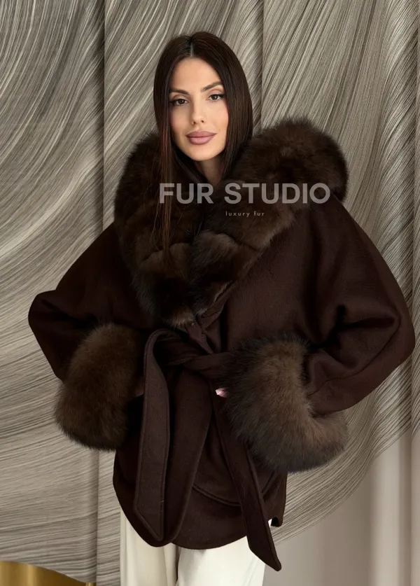 Пальто с мехом песца под соболь 102907