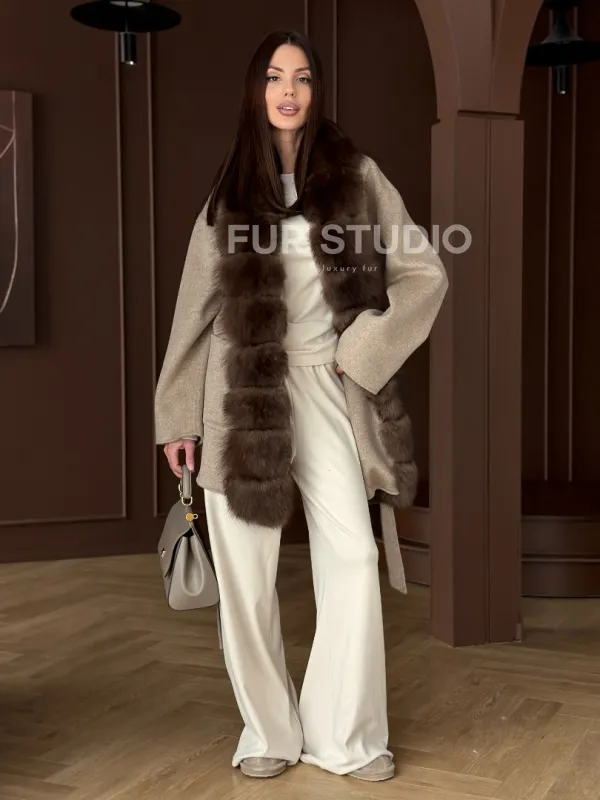 Пальто с отделкой из меха песца 102908