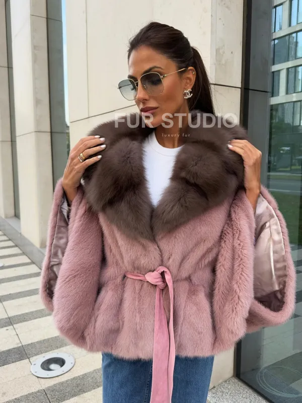 Мех данной шубы аукционная норка, цвет розовый. Предлагается в размерах от 40 до 50. Длина модели 50-55 см, что выгодно подчеркивает фигуру девушек. Эта модель идеально подойдет для девушек и женщин, предпочитающих роскошные натуральные меха.