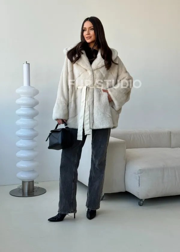 Шуба автоледи под пояс из меха норки 102497