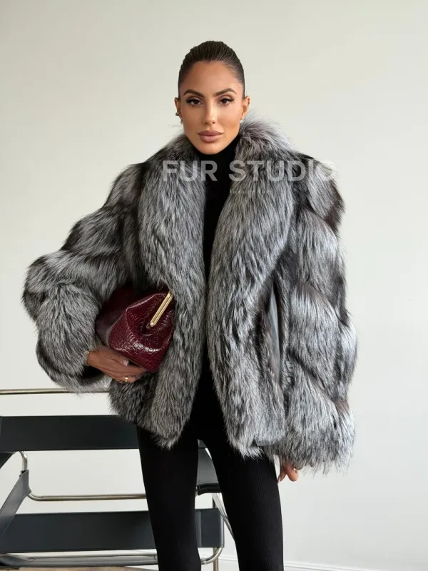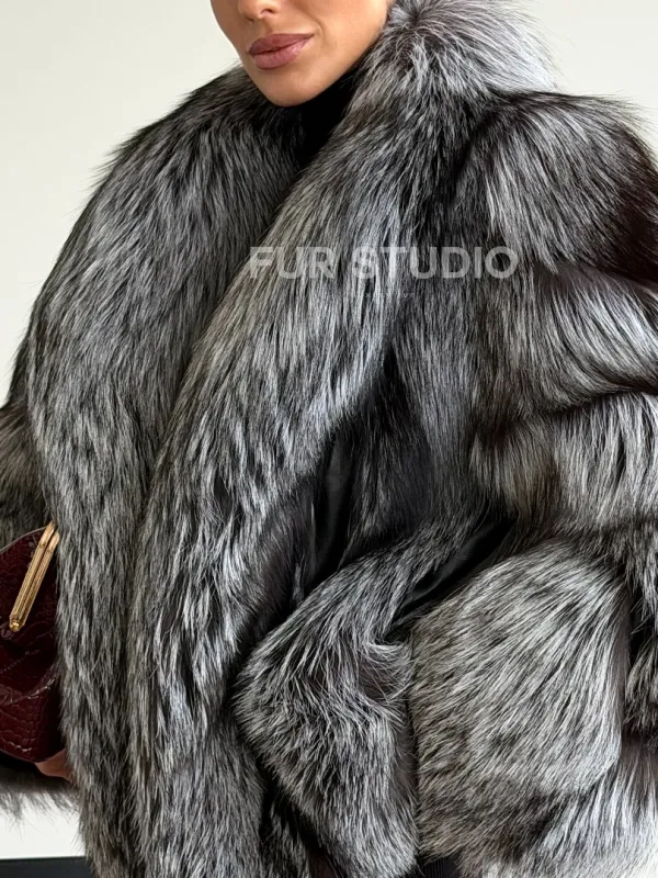 Мех данной шубы лиса, цвет серый. Предлагается в размерах от 42 до 48. Длина модели 55-60 см, что выгодно подчеркивает фигуру девушек. Эта модель идеально подойдет для девушек и женщин, предпочитающих роскошные натуральные меха.