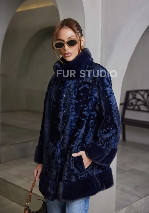 Шуба из каракульчи стойка воротник - цвет синий доступна для покупки в нашем шоуруме Furs Studio в . У нас так же есть доставка во все города России. Добавьте немного роскоши в свой гардероб с этой шубой, которая будет служить вам многие годы.