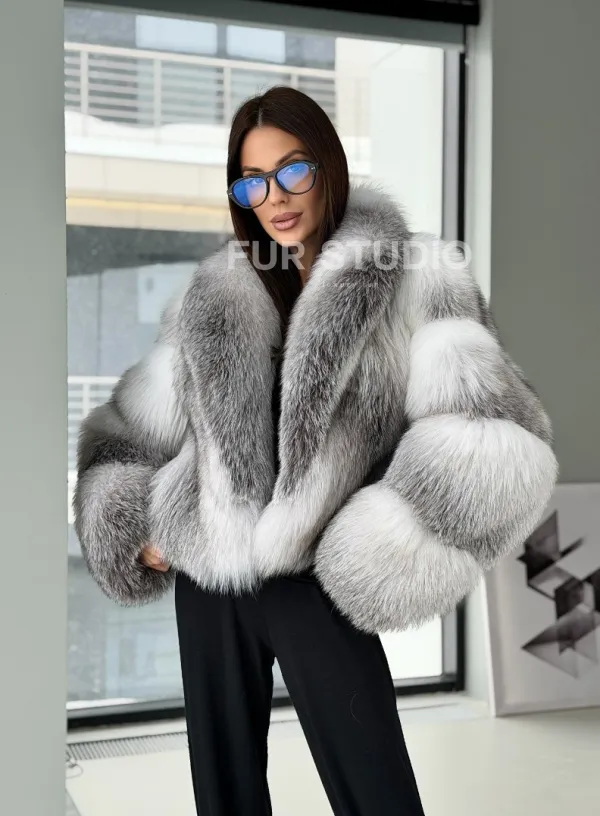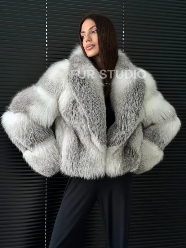 Мех данной шубы лиса, цвет белый. Предлагается в размерах от 42 до 50. Длина модели 55-60 см, что выгодно подчеркивает фигуру девушек. Эта модель идеально подойдет для девушек и женщин, предпочитающих роскошные натуральные меха.