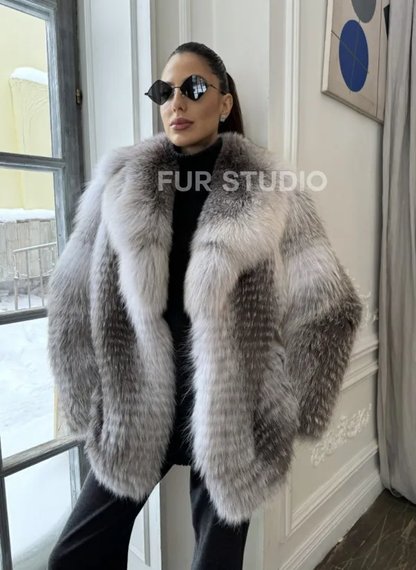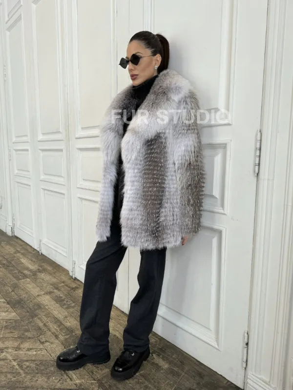Шуба из меха арктической лисы - серая 100660