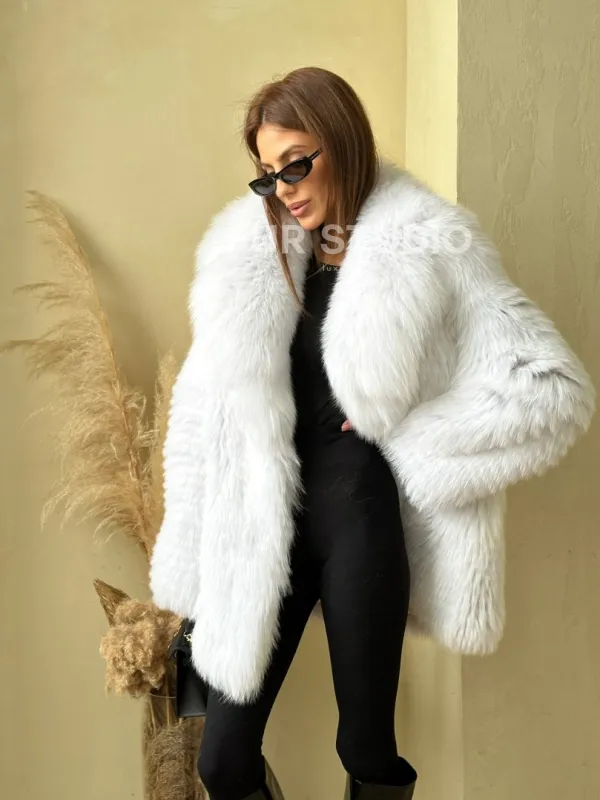 Шуба из меха белой лисы 100729