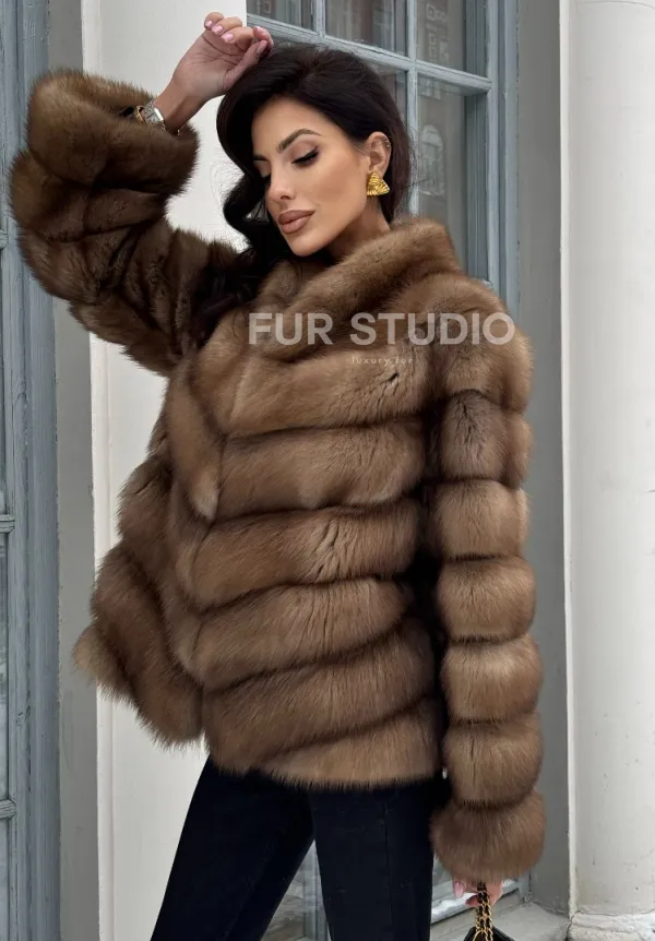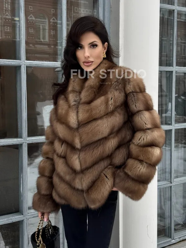 Шуба из меха куницы с V-образным воротником доступна для покупки в нашем шоуруме Furs Studio в . У нас так же есть доставка во все города России. Добавьте немного роскоши в свой гардероб с этой шубой, которая будет служить вам многие годы.