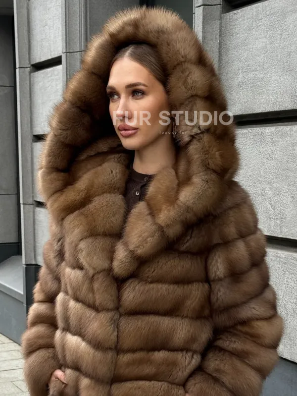 Шуба из натурального меха куницы с капюшоном доступна для покупки в нашем шоуруме Furs Studio в . У нас так же есть доставка во все города России. Добавьте немного роскоши в свой гардероб с этой шубой, которая будет служить вам многие годы.