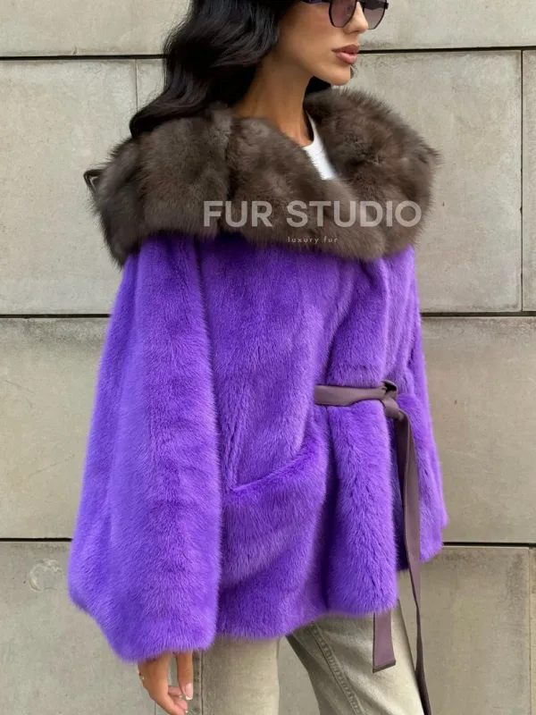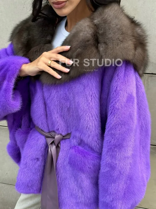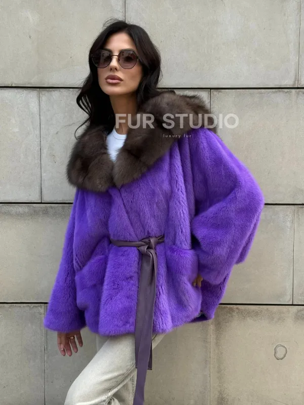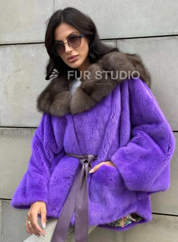 Мех данной шубы аукционная норка, цвет фиолетовый. Предлагается в размерах от 42 до 50. Длина модели 60-65 см, что выгодно подчеркивает фигуру девушек. Эта модель идеально подойдет для девушек и женщин, предпочитающих роскошные натуральные меха.