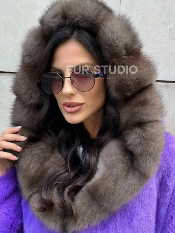 Шуба из норки Violet с капюшоном из меха куницы доступна для покупки в нашем шоуруме Furs Studio в . У нас так же есть доставка во все города России. Добавьте немного роскоши в свой гардероб с этой шубой, которая будет служить вам многие годы.