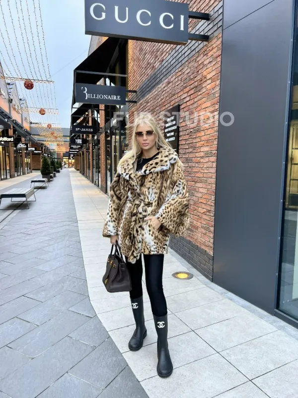 Шуба из оцелота под леопард модель «Летучая мышь» 100095