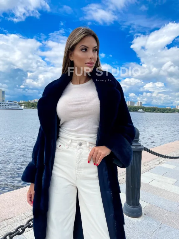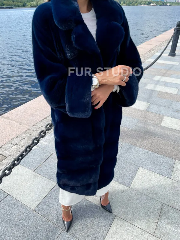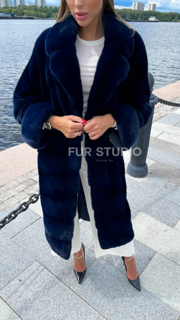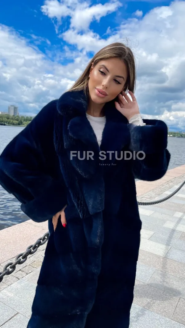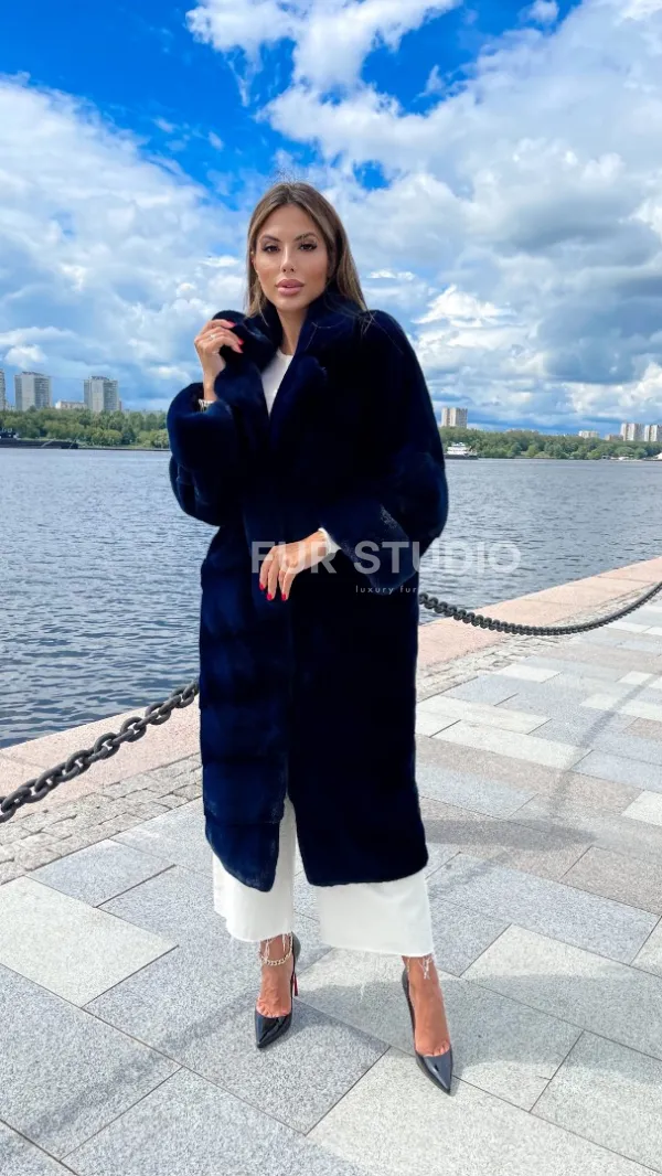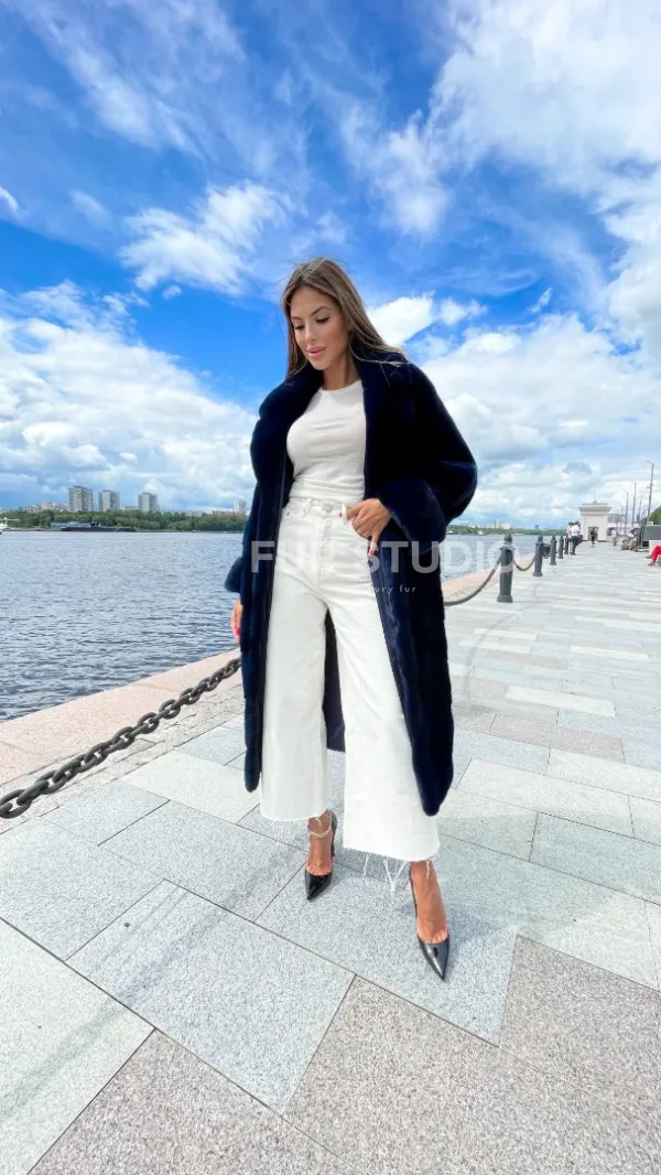 Цвет индиго выгодно подчеркнет оттенок волос и кожи владелицы. Широкие манжеты делают акцент на тонкости кистей. Необычный воротник позаботится о комфорте шеи и подчеркнет ее изящество. Купить шубу из плюшевой норки в цвете индиго могут девушки, которые любят приковывать взгляды и находится в центре внимания.