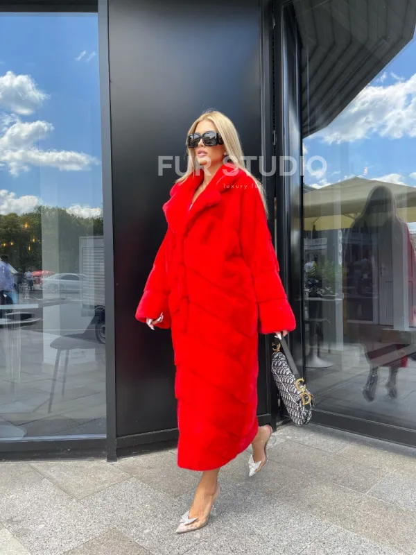 Шуба из норки Velvet в красном цвете 100107