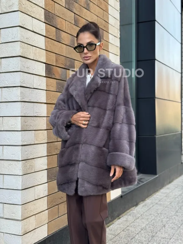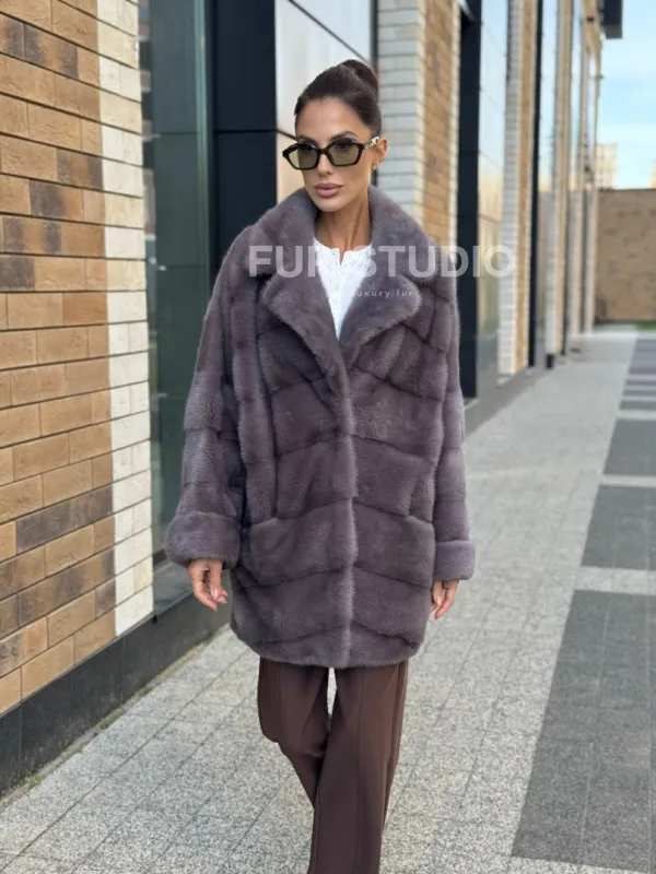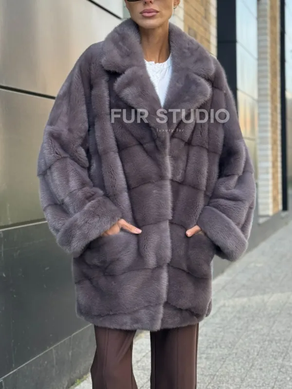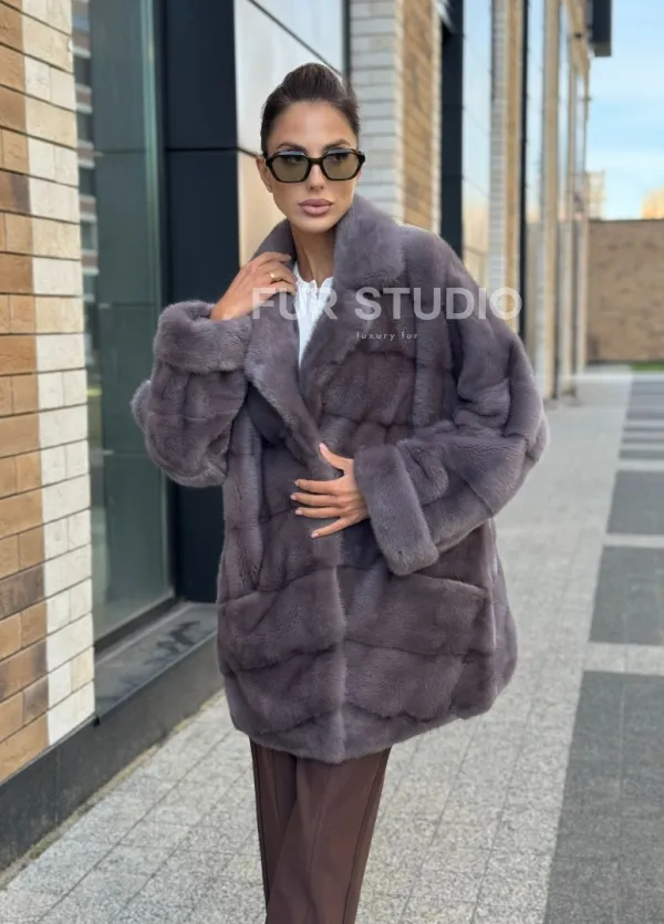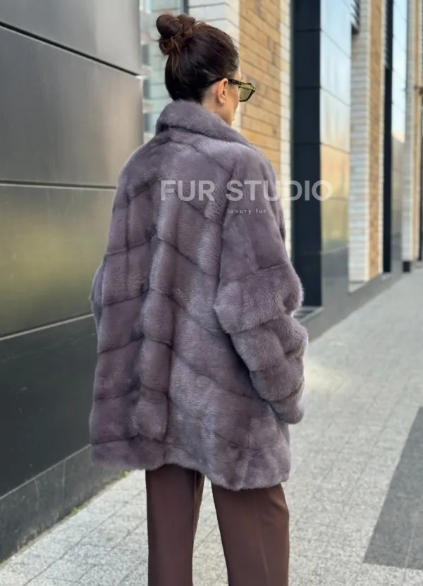 Длинные рукава подчеркнут нежные кисти, а удобные карманы не допустят, чтобы они замерзли. Модель подойдет под базовый гардероб, сочетается с вечерним нарядом. Неординарная сумочка дополнит образ, и вы будете выглядеть, как с обложки журнала. Купить короткую шубу из меха норки с воротником из меха куницы цвет лаванда могут только девушки, которые знают, что хотят от жизни.