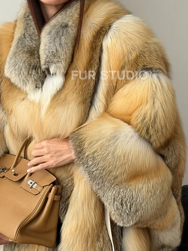 Мех данной шубы лиса, цвет рыжий. Предлагается в размерах от 42 до 52 (oversize). Длина модели 75-80 см, что выгодно подчеркивает фигуру девушек. Эта модель идеально подойдет для девушек и женщин, предпочитающих роскошные натуральные меха.