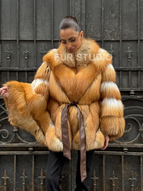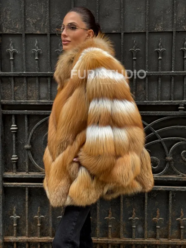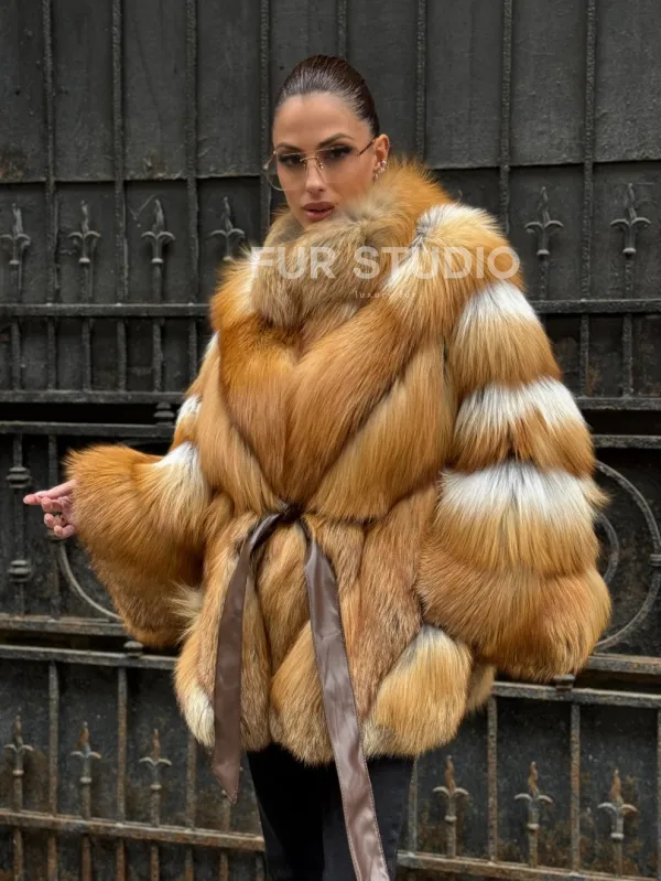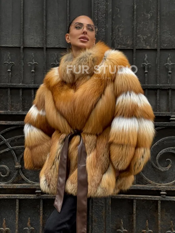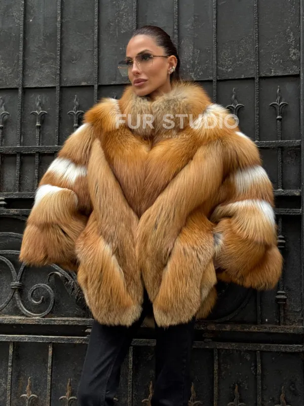 Мех данной шубы лиса, цвет рыжий. Предлагается в размерах от One Size (40 до 54). Длина модели 75-80 см, что выгодно подчеркивает фигуру девушек. Эта модель идеально подойдет для девушек и женщин, предпочитающих роскошные натуральные меха.
