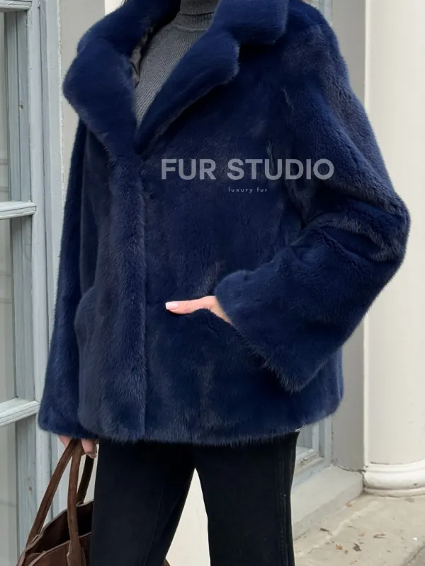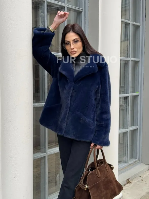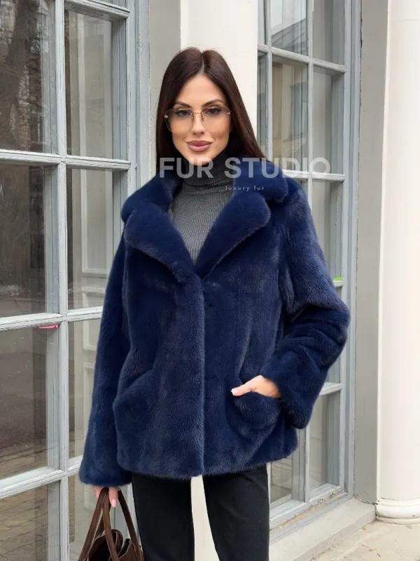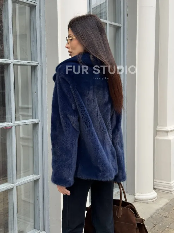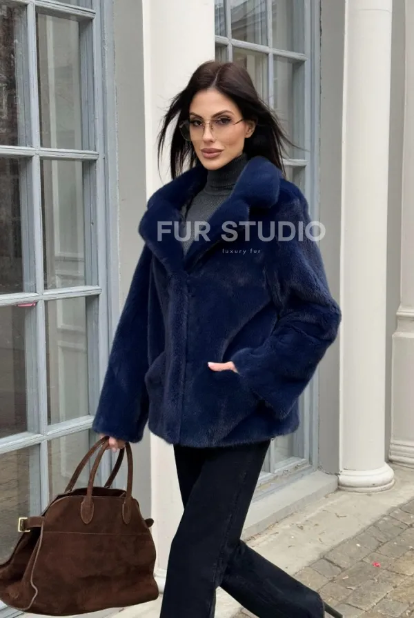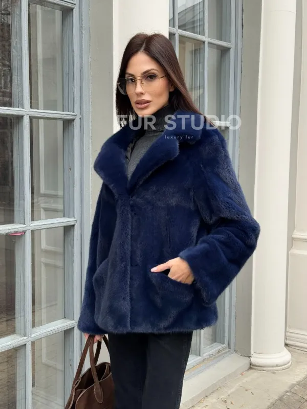 Синий норковый полушубок с английским воротником доступна для покупки в нашем шоуруме Furs Studio в . У нас так же есть доставка во все города России. Добавьте немного роскоши в свой гардероб с этой шубой, которая будет служить вам многие годы.