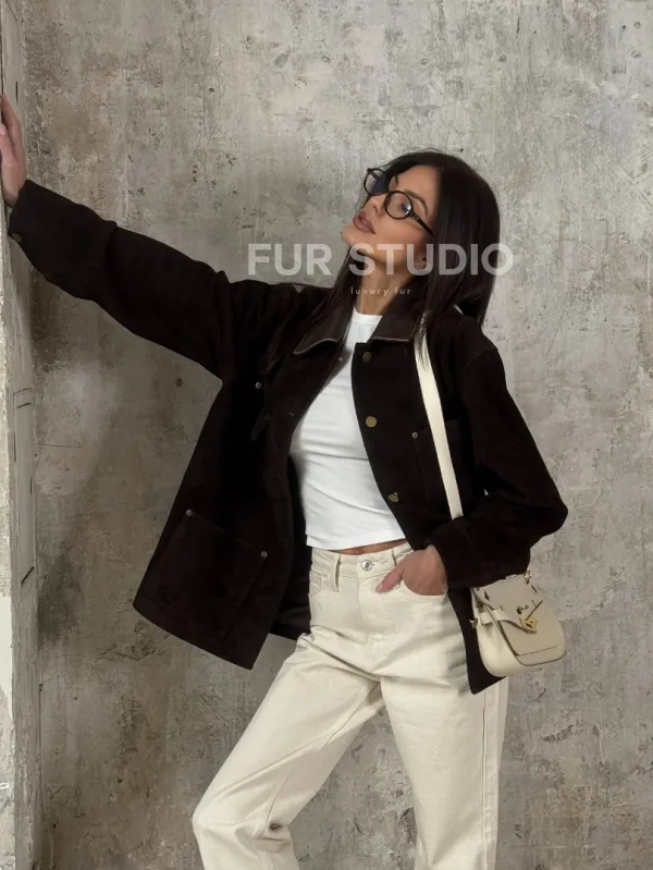 Тренд весна - 2025 "Рабочая куртка" из натуральной замши доступна для покупки в нашем шоуруме Furs Studio в , где также предоставляется удобная доставка во все города России.